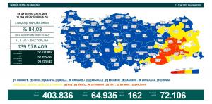 Bugünkü verilere göre Türkiye’de Son 24 saatte 403.836 coronavirüs testi yapıldı.