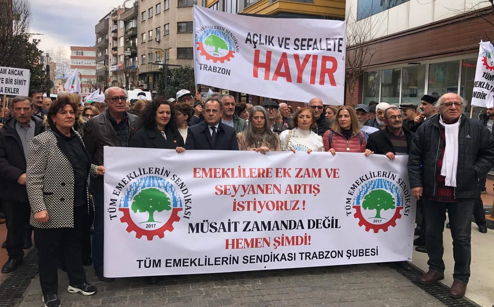Tüm Emekliler Sendikası Trabzon Şubesi’nin organize “Emeklinin geçim sorunu acil, “Müsait zamanda” değil, hemen şimdi! mitingi gerçekleştirdi.